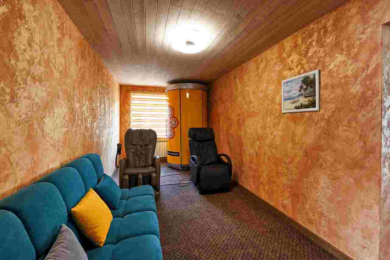 Часть дома заслуженно отдана под любимые гостями банные процедуры. Сауна-баня с парной и бассейном по своему оформлению и размерам не уступают размаху самой усадьбы. Сауна из экологически чистых пород дерева свободно вмещает до 15 человек. А бассейн вообще является одним из самых любимых мест гостей Vice House. Тут можно не только понежиться в просторном бассейне с водопадом и плавательными пушками, но и отметить свой личный праздник с «видом» на небо на потолке. Бассейн оформлен подсветкой – можно выбрать цвет своего настроения!