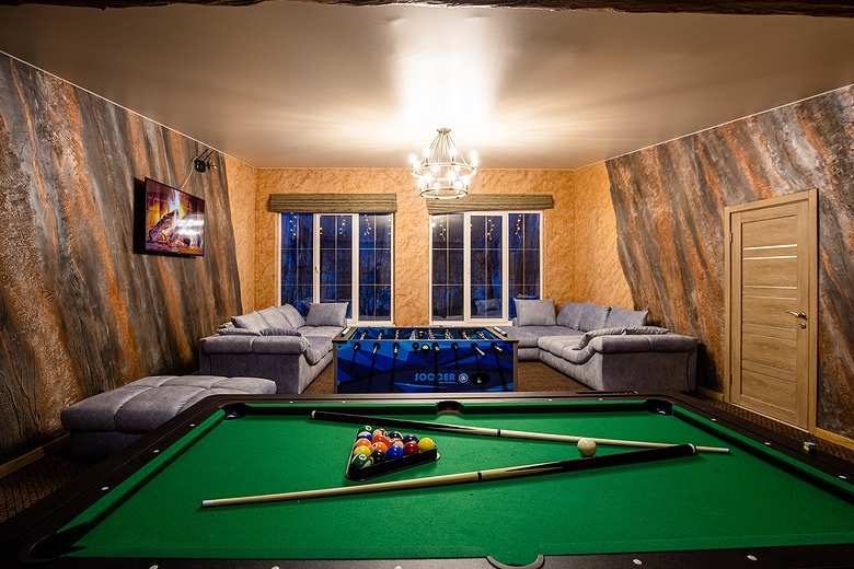 Дом состоит их четырех уровней, на двух из которых созданы все условия, чтобы провести любое мероприятие и хорошенько отдохнуть. Для взрослых мероприятий оборудован стриптиз-зал, танцевальный зал с лазерным шоу, дым-машиной, микшером, русским премиум- бильярдом (12 фут), «американкой» (pool, 9 фут), настольным теннисом, beer-pong и караоке с двумя микрофонами.