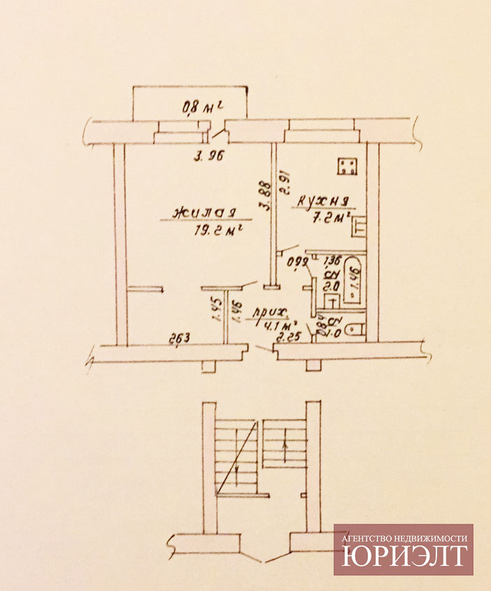 Высокий первый этаж, теплый кирпичный дом, просторная жилая комната с нишей размером 19.2 кв.м, санузел разделен с ванной комнатой, просторная лоджия, потолки высотой 2.7 м