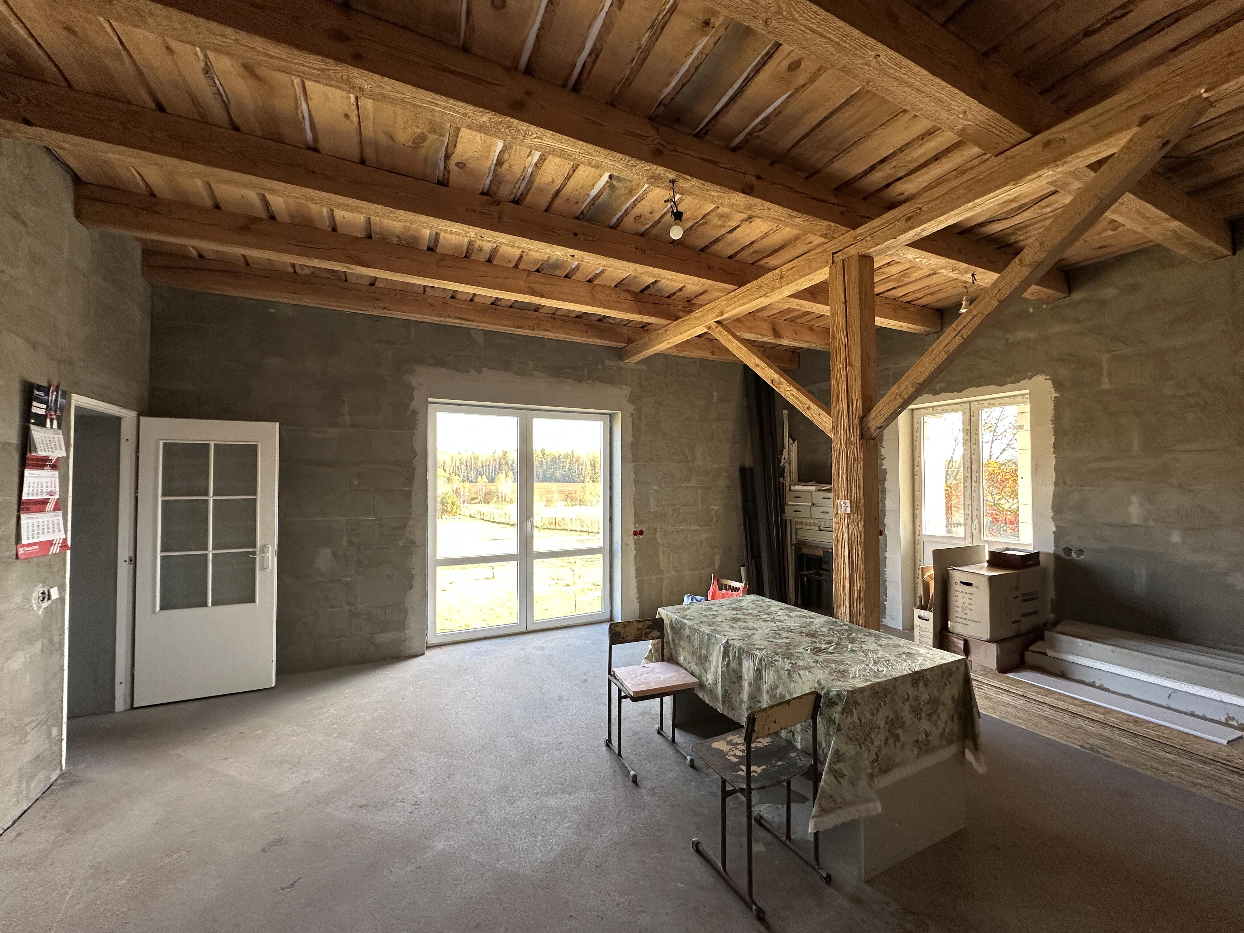- деревянные балки в кухне-гостиной обрашированы;
