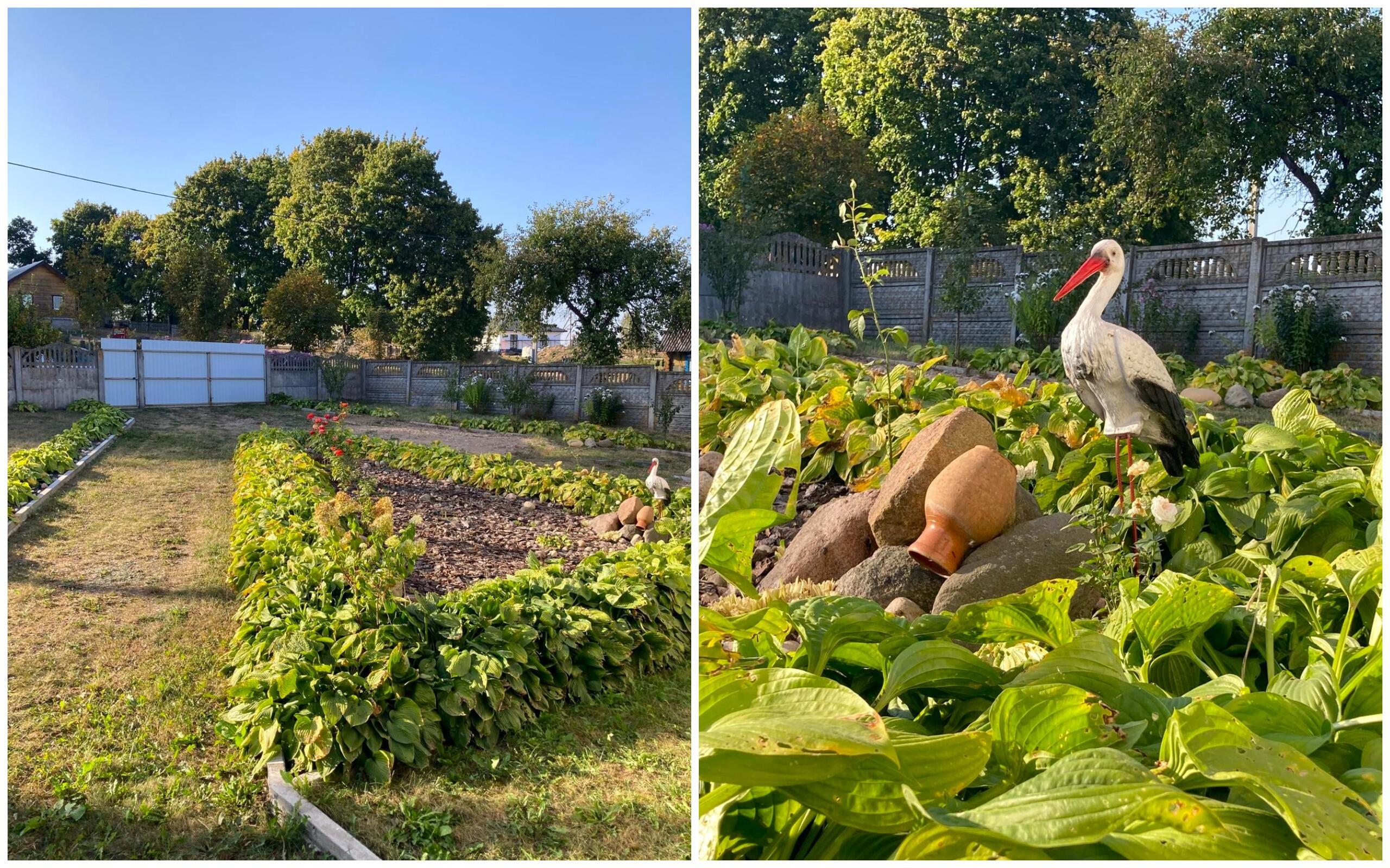 Большое количество насаждений: плодовые деревья и сортовые ягодные кустарники, декоративные растения, разнообразие цветов. Установлены ульи.
