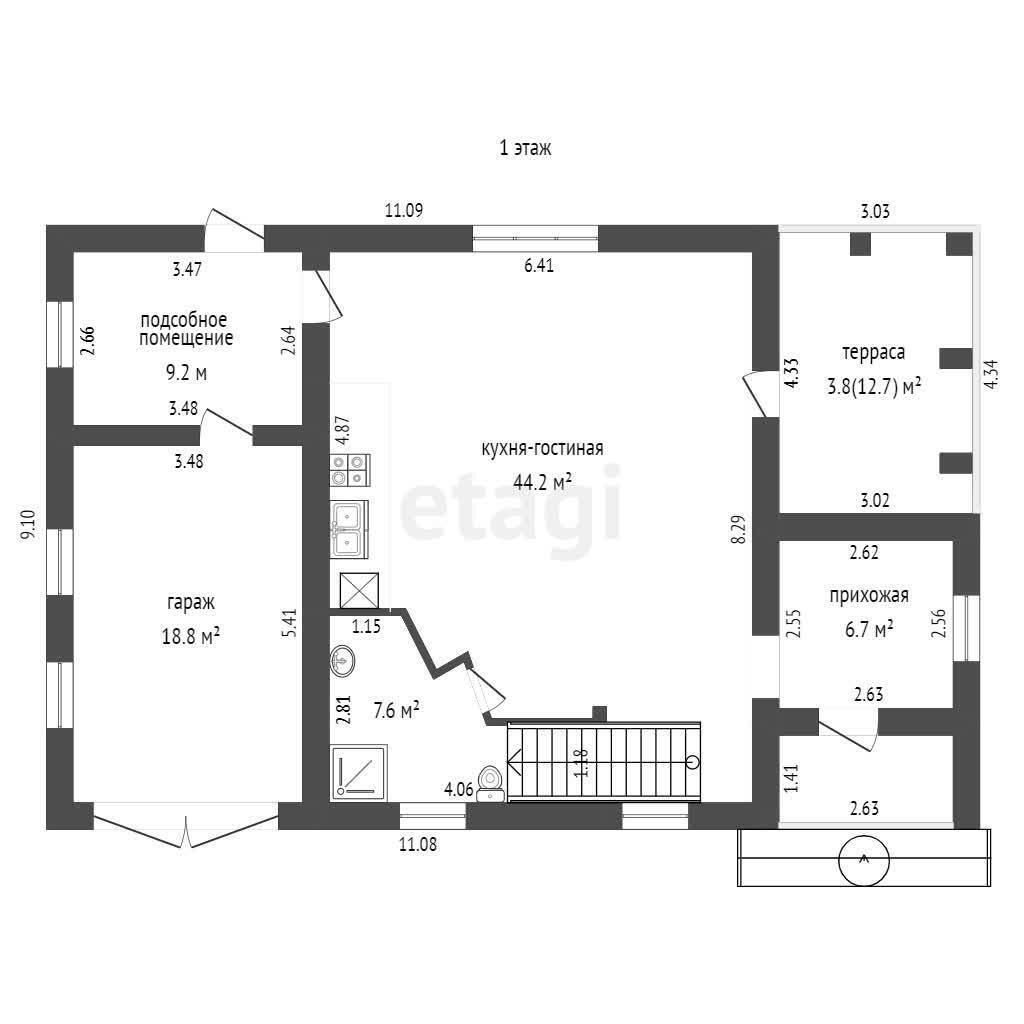 - гараж с подъемными воротами (18.8 кв.м.);