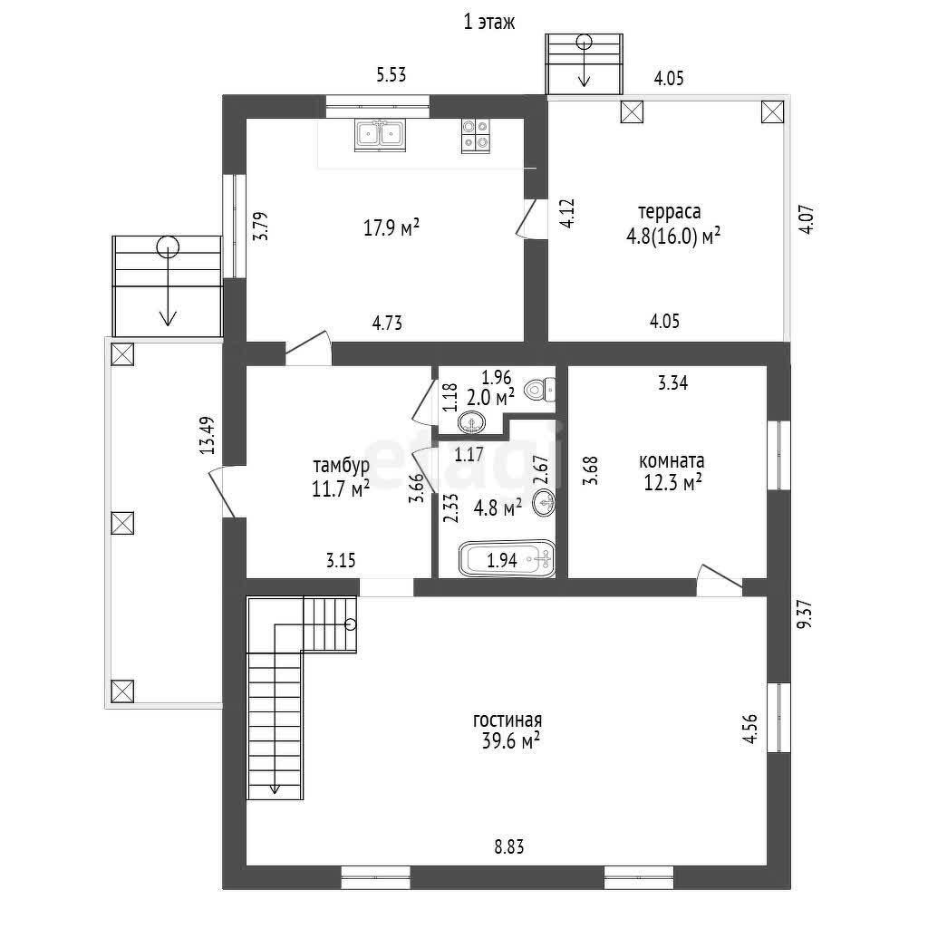 - Есть цокольная часть, общей площадью - 69,4 м2 (под авто и котельную)Фасад – утеплен и оформлен сайдингомВнутренняя часть стен подготовлена под финишную отделку