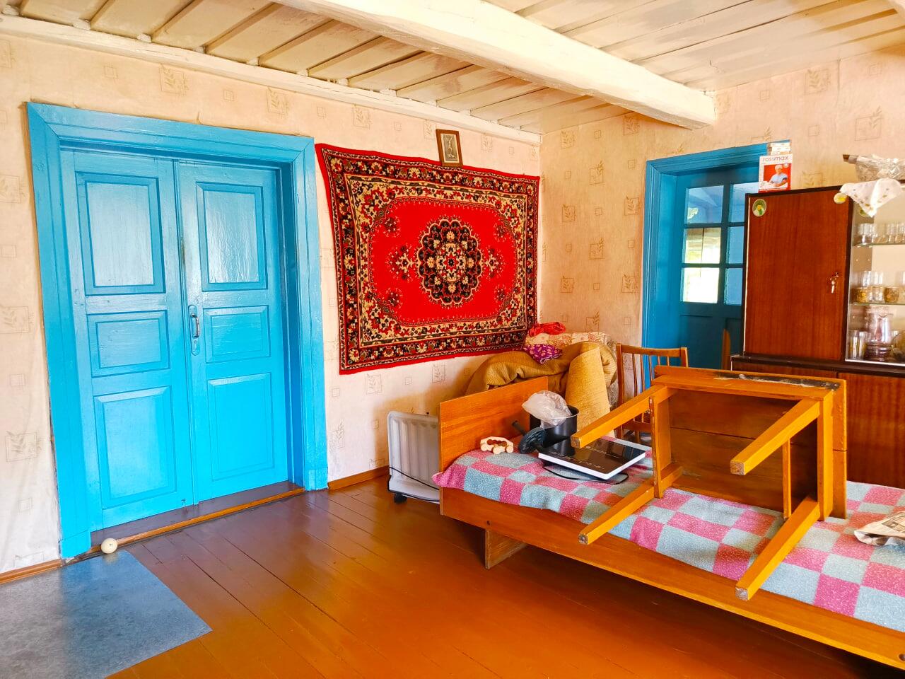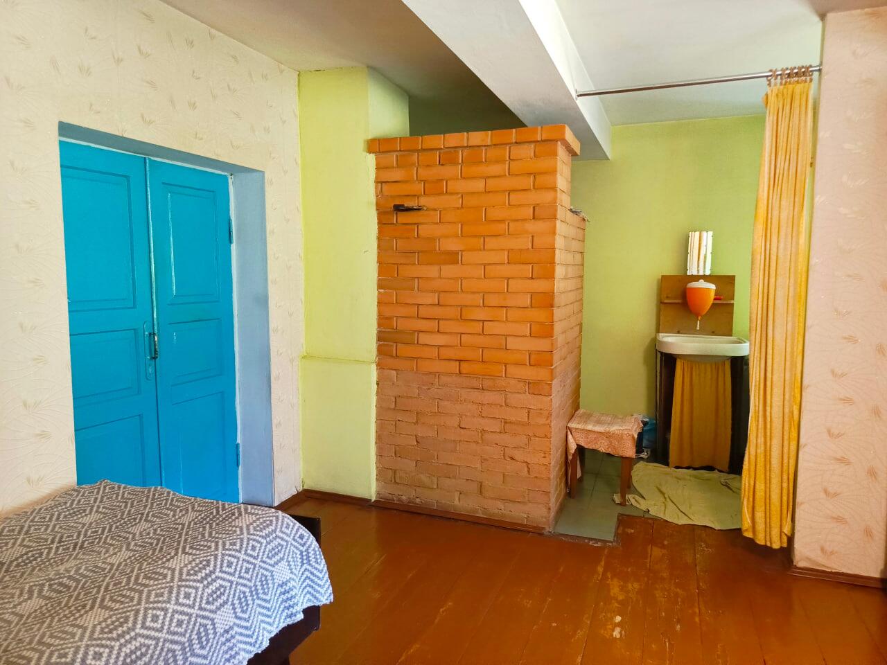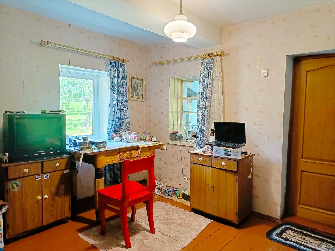 Дом добротный из дерева, обложен кирпичем, есть вся необходимая мебель, в правой части оборудована кухня. Два отдельных входа позволят комфортно разместиться двум семьям. Коммуникации - электричество и телефон, газ в баллонах (привозят в деревню), водоснабжение - колодец, туалет на улице, отопление печное.
