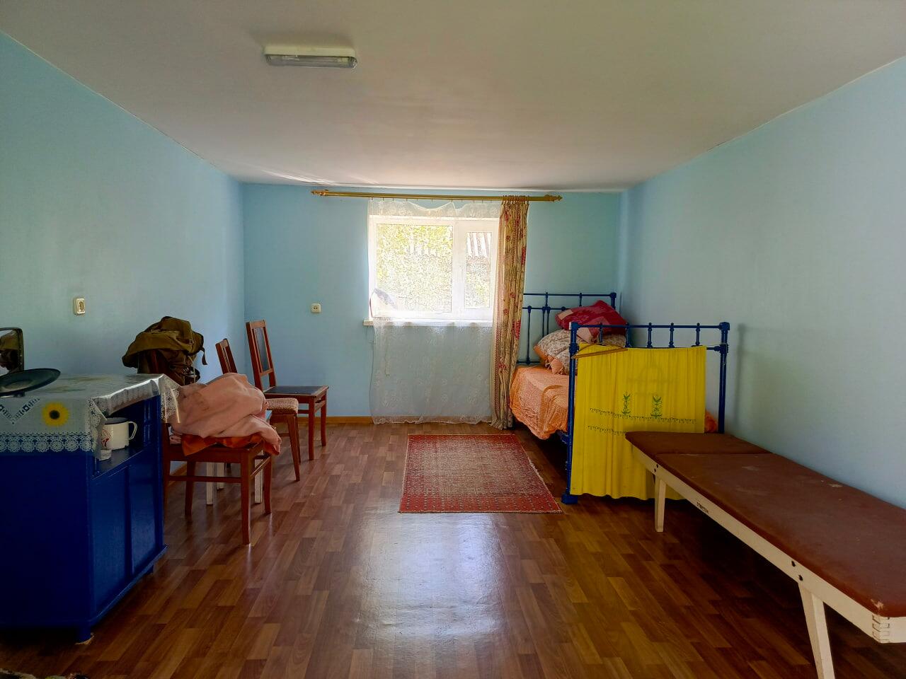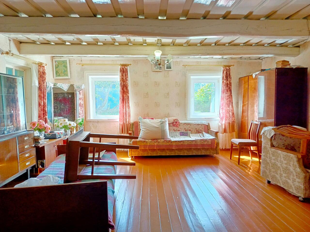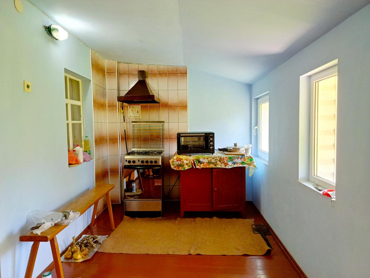 Дом добротный из дерева, обложен кирпичем, есть вся необходимая мебель, в правой части оборудована кухня. Два отдельных входа позволят комфортно разместиться двум семьям. Коммуникации - электричество и телефон, газ в баллонах (привозят в деревню), водоснабжение - колодец, туалет на улице, отопление печное.