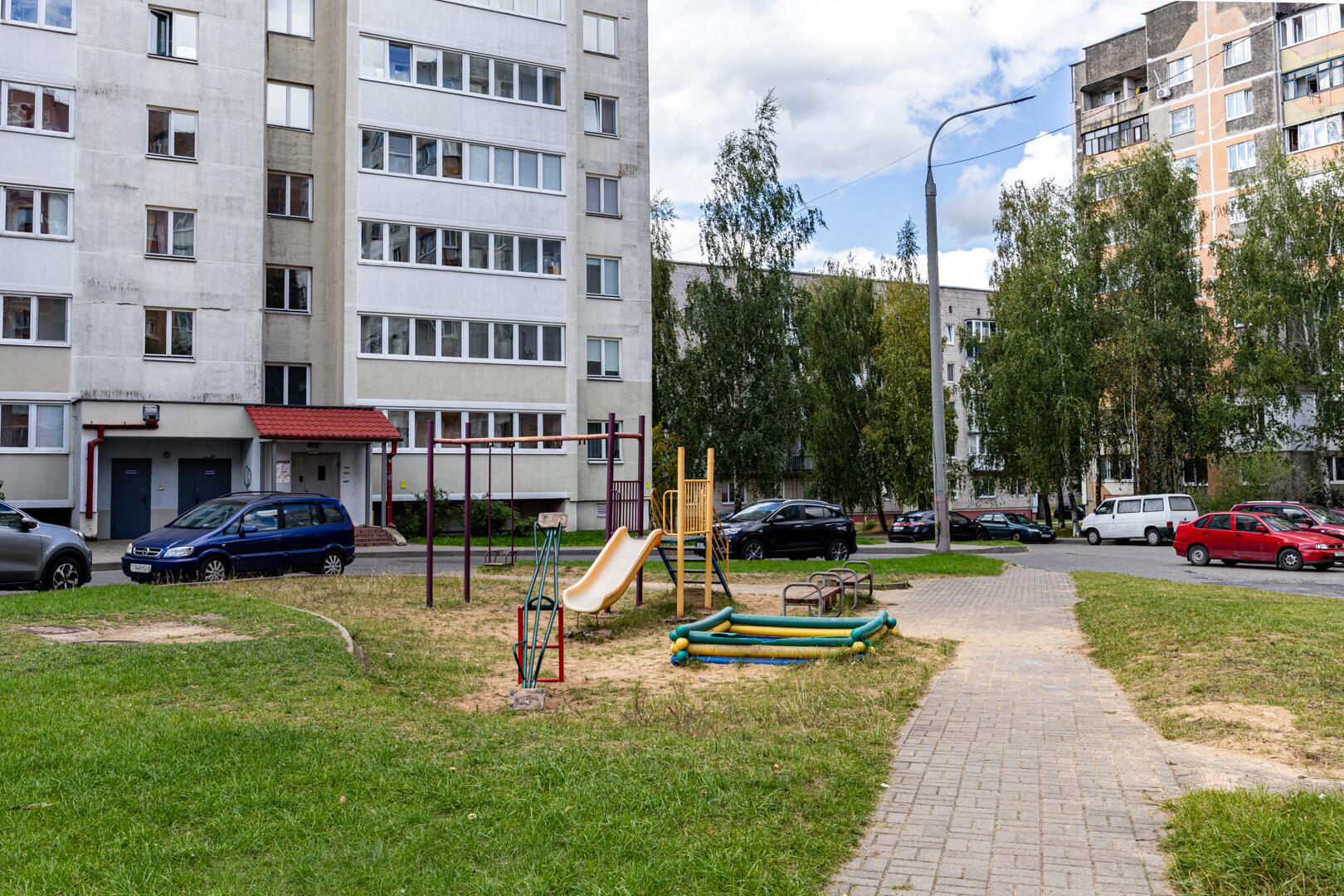 Двор и район – важные детали:Здесь вы забудете про поиски парковки – мест достаточно. Территория ухоженная, с современными детскими площадками. В шаговой доступности магазины (Евроопт), банк, стадион, кафе, школа и детский сад.А удобная транспортная развязка позволит быстро добраться в любую часть города.